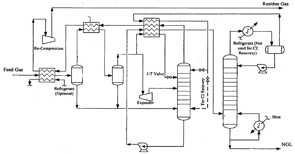 لازم به توضیح است در عمده روشهای مورد بررسی لازم است رطوبت موجود در گاز قبل از ورود به واحد گرفته شود تا از ایجاد هیدرات گازی در زمان کاهش دما ممانعت گردد. در این فرایند کافی است رطوبت با استفاده از حلال تری اتیلن گلایکول گرفته شود. شکل زیر نمودار این واحد رانشان می دهد. [منیع: کتاب Handbook of Natural